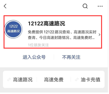 首先,关注:【12122高速路况】微信公众号,(或者点击上方标题下方 蓝字或文末二维码都可关注)